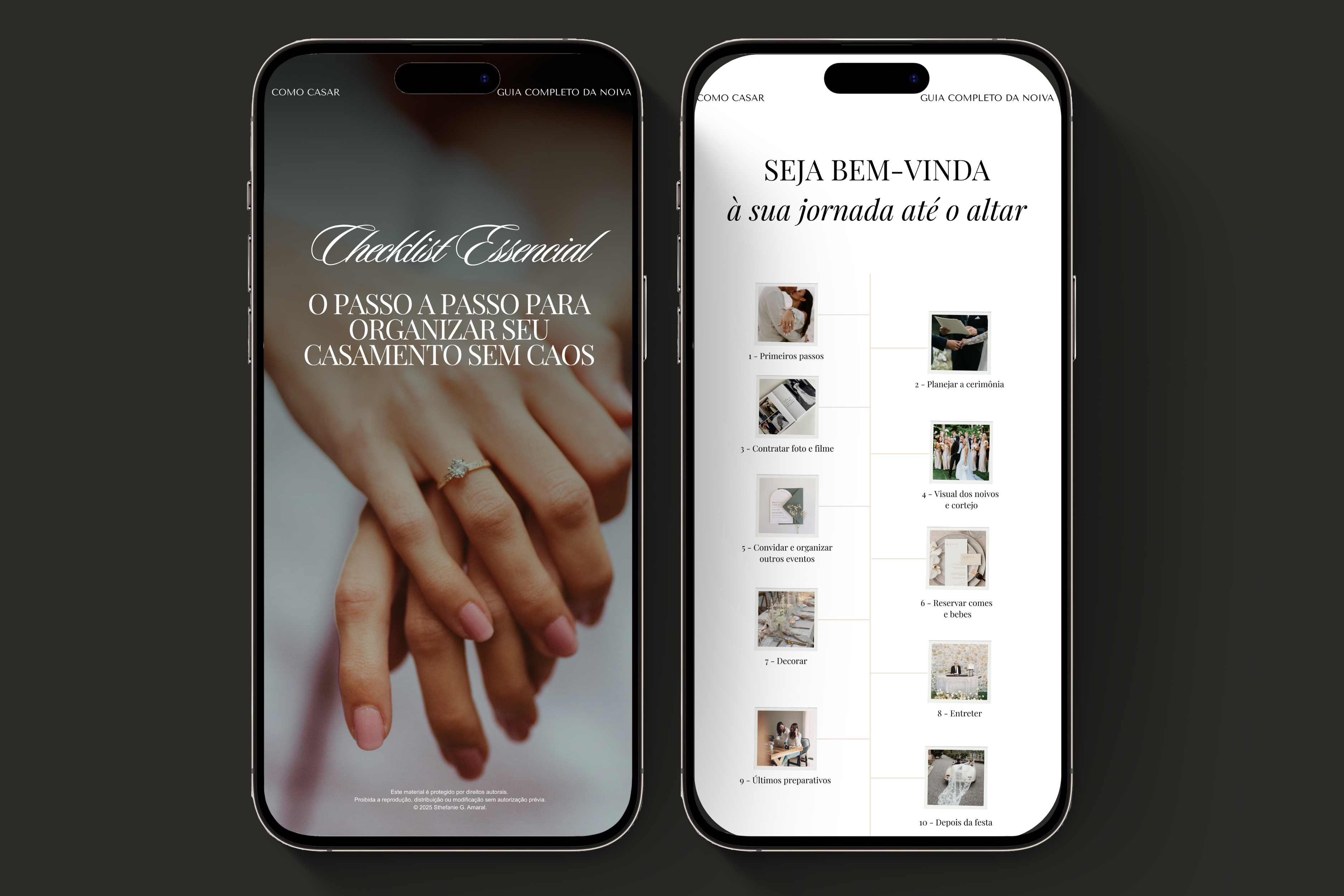 Quando planejei meu próprio casamento, percebi que faltava algo no mercado: um guia verdadeiramente completo, prático e sem enrolação para noivas que querem planejar com autonomia.